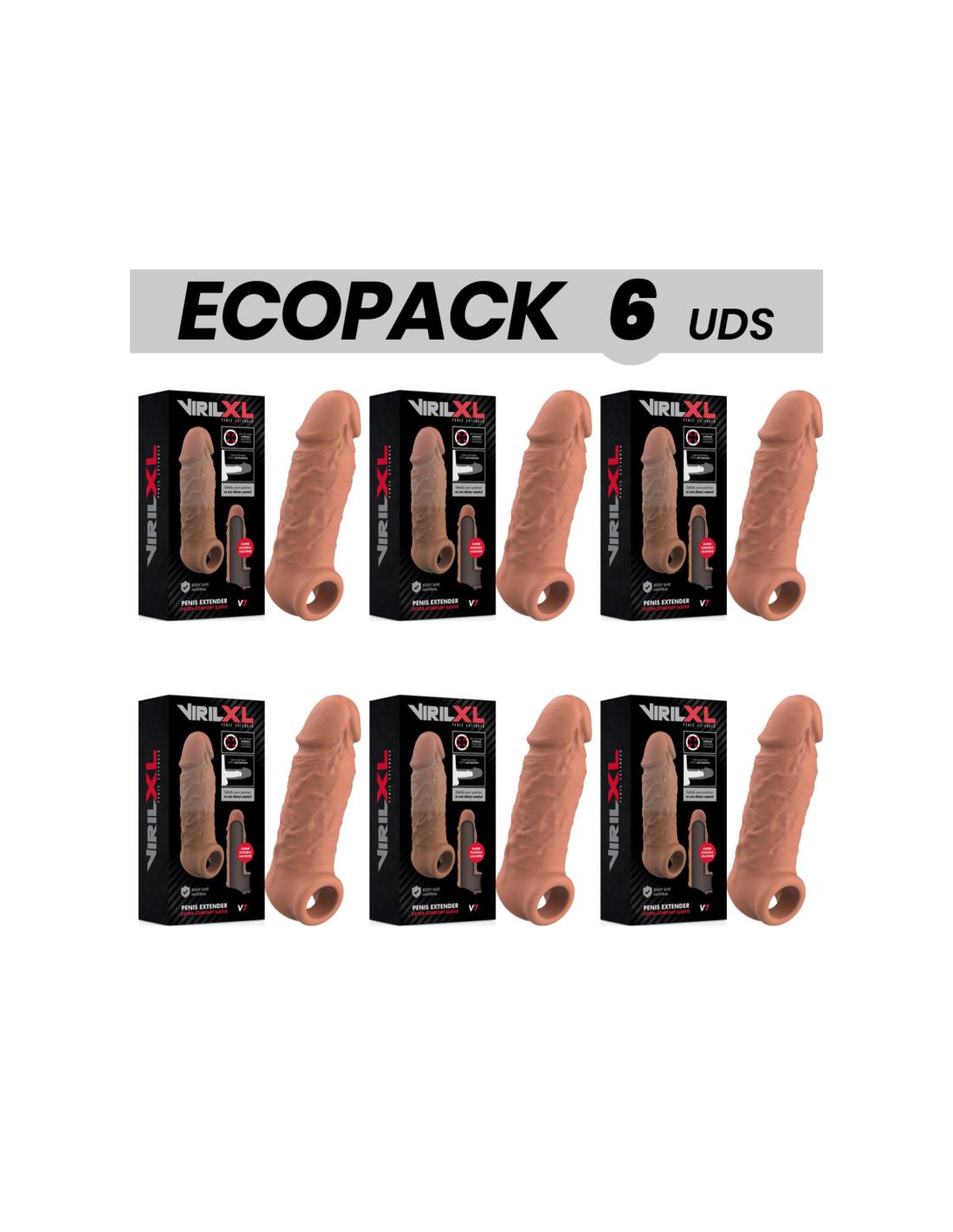 ECOPACK 6 VIENETAI - VIRILXL SKYSTO SILIKONINIO VARPOS ILGINIMO PRIEMONĖ V7 RUDOS SPALVOS