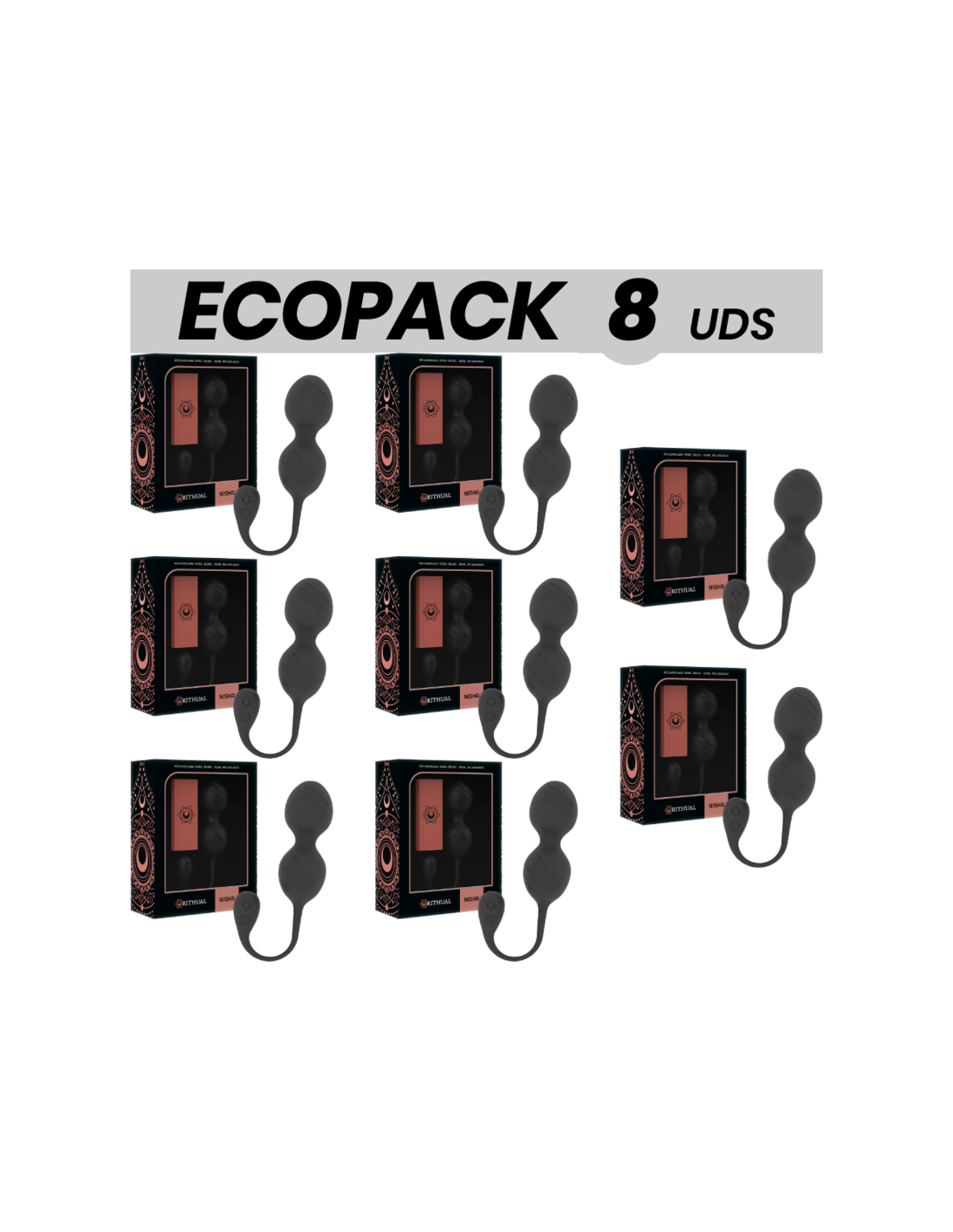 ECOPACK 7 VIENETAI - RITHUAL NISHA ĮKRAUNAMI VIBRUOJANTYS KEGELIO KAMUOLIAI JUODI 7 1 NEMOKAMAI