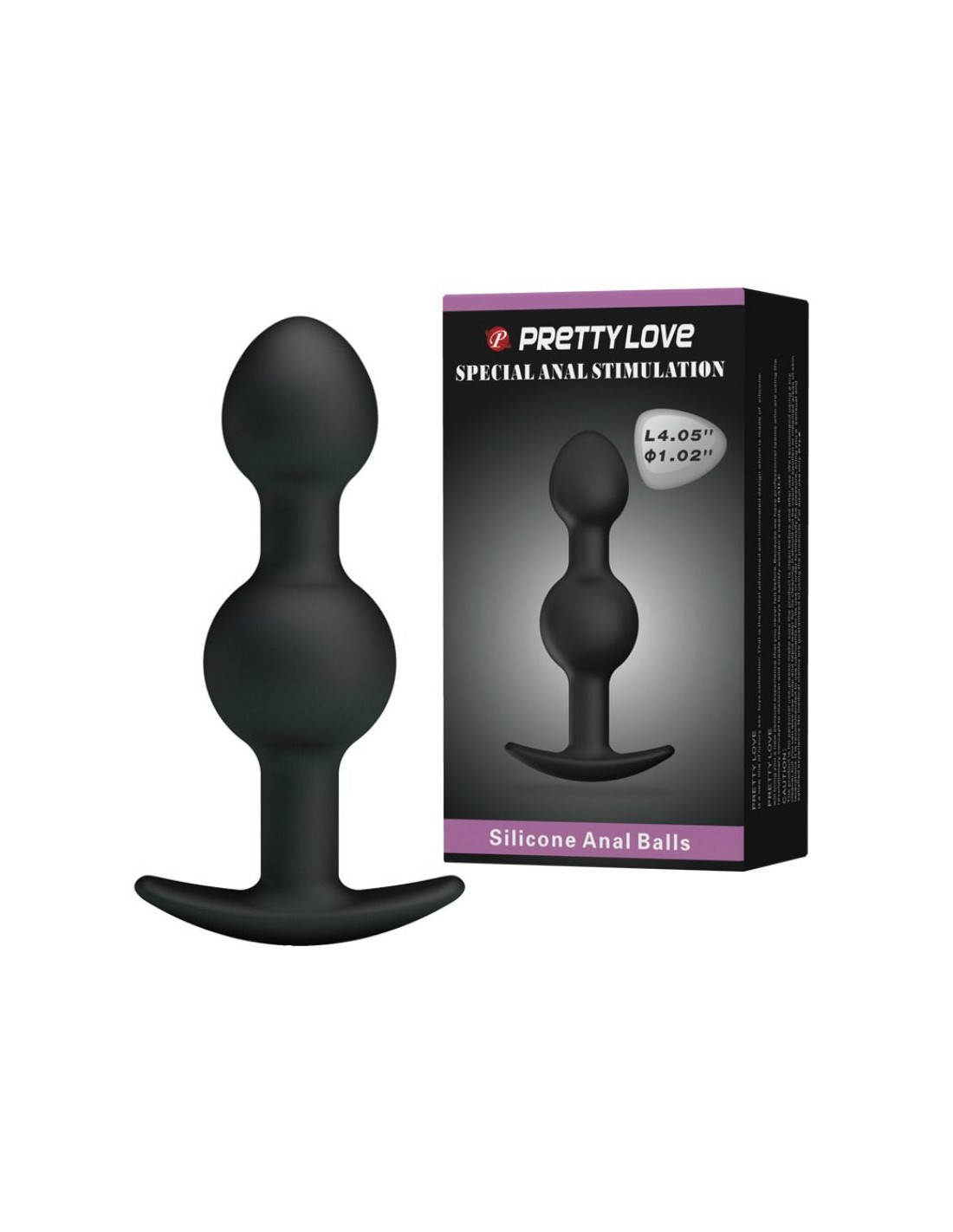 PRETTY LOVE - SPECIALŪS STIMULIACINIS SILIKONINIAI ANALINIAI KAMUOLIAI 10,3 CM JUODI